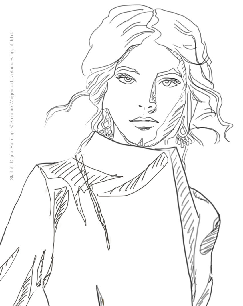 fashion illustration, digital painting, sketch
