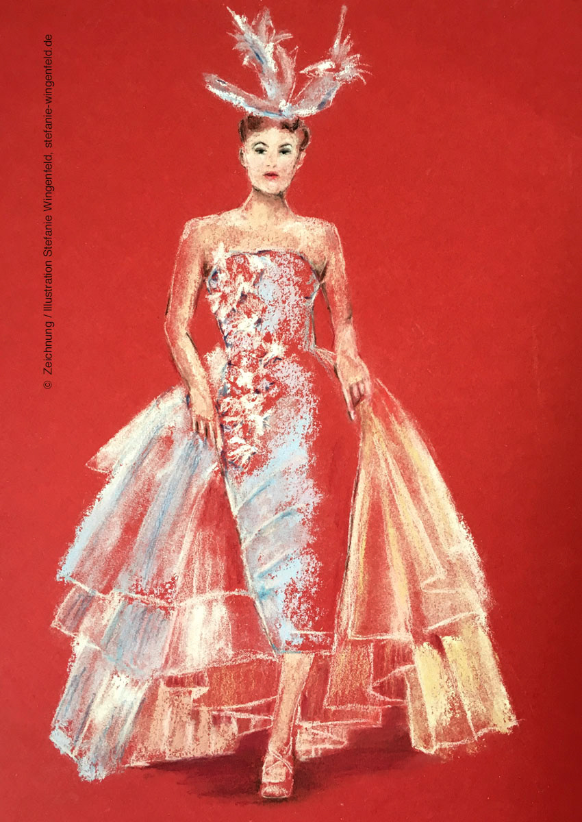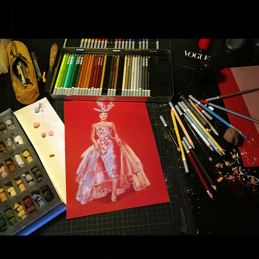 Fashion Illustration, Freehand-Drawing, Style-illustration, Coloured Paper, Pastel Pencils, Chalks